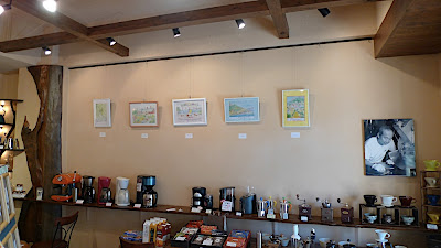 ニシナ屋珈琲古江店では「ArtLib第25弾:Kura作品展」が始まっています。